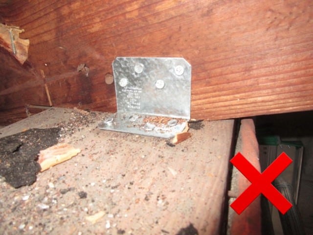 A common retrofit that we see is when a hurricane strap is laid on top of the block wall or wood top plate. This is not an approved install by the manufacture. The reason being that if the roof were to lift up, the force will be placed on the single nail/screw nearest to the truss. This lifting force is centered on one nail/screw rather than 3 or more like you would have with an approved connector. Other improper installs we see are when the contractor uses the wrong type of hurricane clip. Hurricane clips that are used in retrofits need to be rated to handle uplift as well as lateral loads. These clips will usually have added bracing to handle the lateral loads.